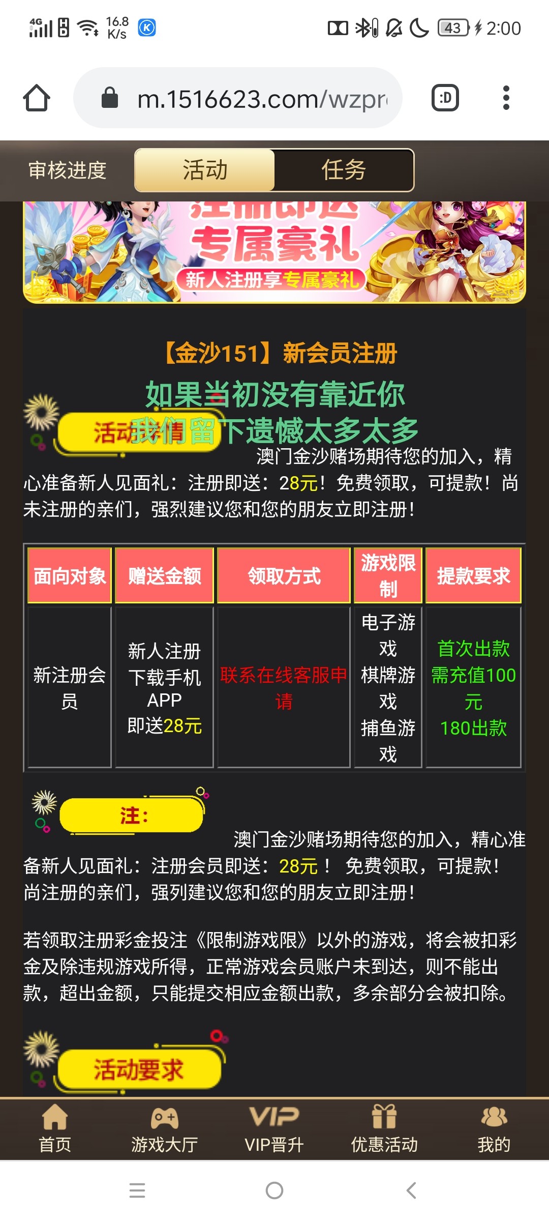 359棋牌老用户在151金沙注册绑卡联系客服申请38-188彩金,下载APP系统自动弹出28彩金,出款自测!