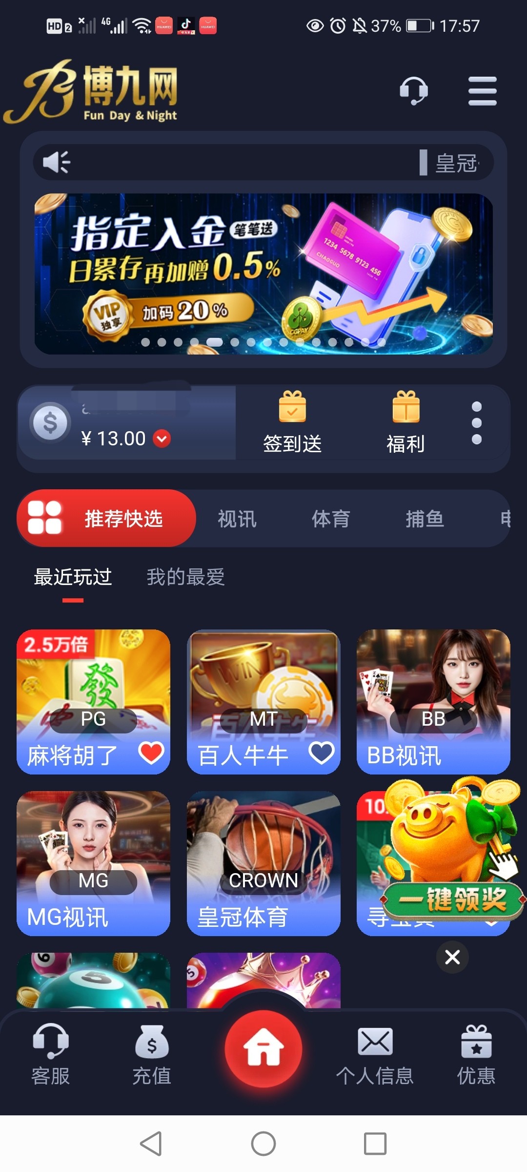 博九网每天签到领彩金