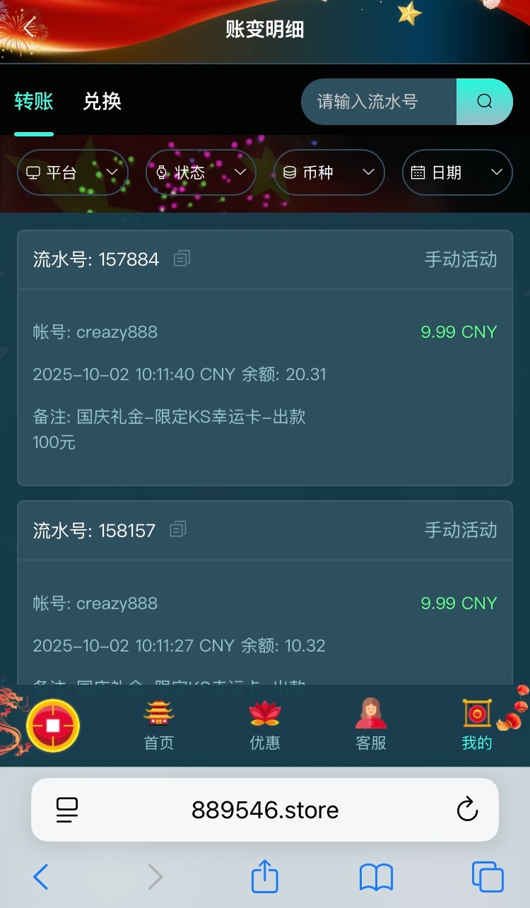 幻影发了9.99国庆礼金,有号的都去看看,只能玩幸运之卡。