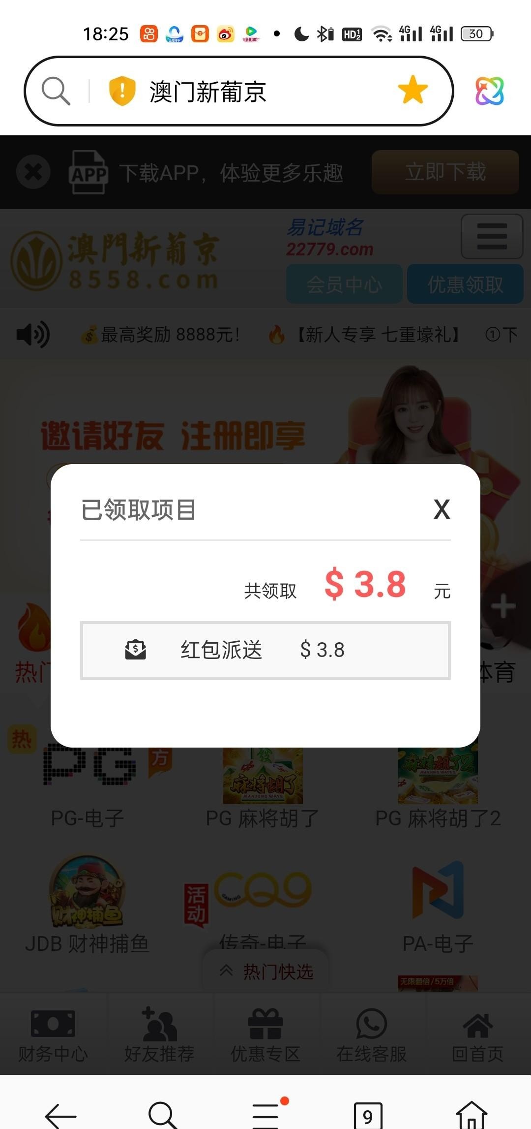 8558.com,不知道什么彩金,登录就有,一键领取