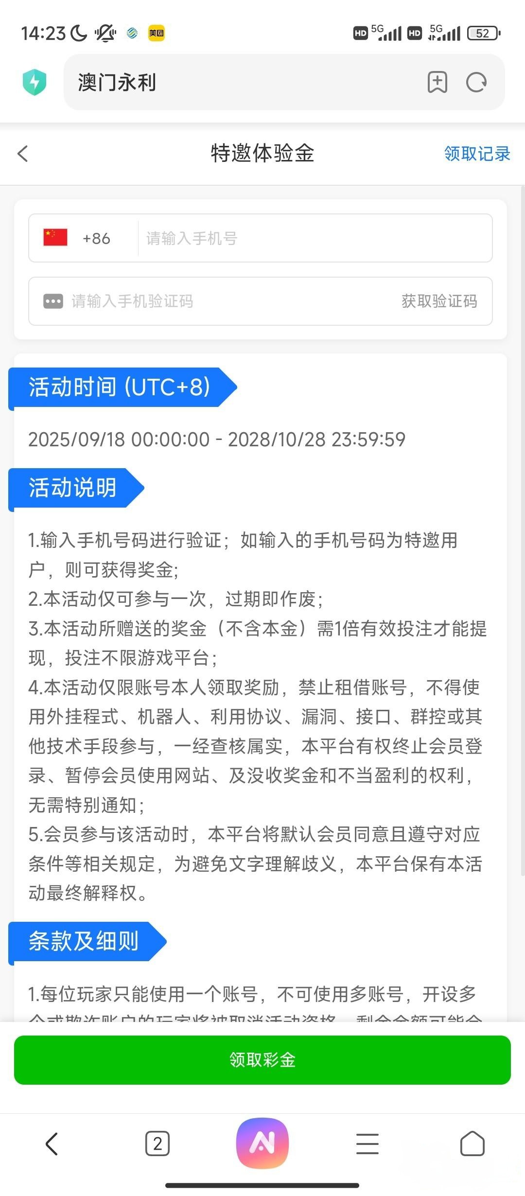 注册彩金应该都有,我是老号不支持申请