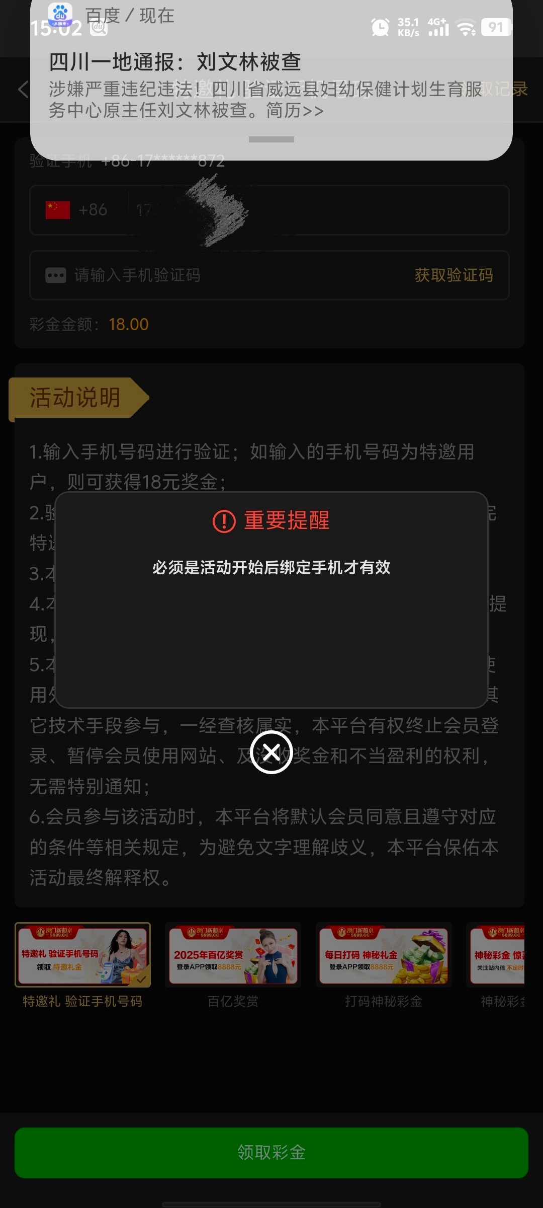 我是登上就有,另外还有一个特邀验证可以,活动开始之前我就注册了不给领,你们可以试试