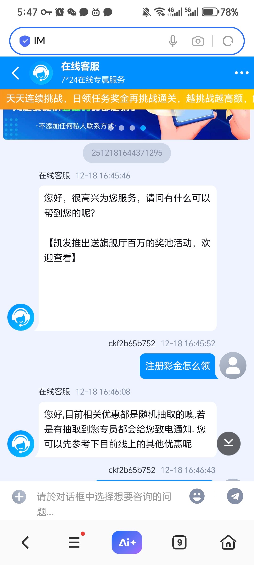我四点注册了找客服不给领,刚刚就打电话来了,重新找客服报专员名字就派送了。建议自己先注册了找客服碰瓷然后等来电话再去就有
