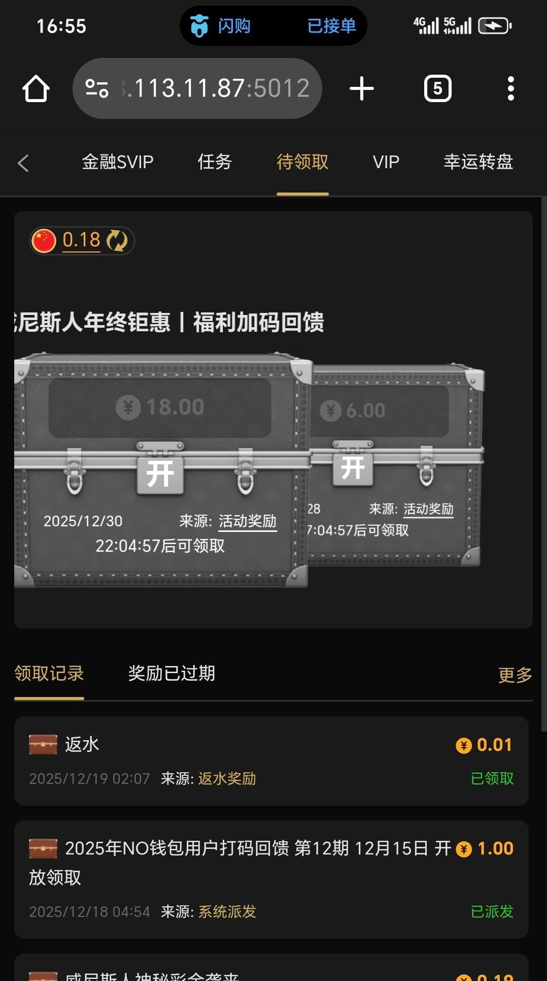 手机注册送32。开宝箱5块    小游戏还可以领取15块  共50  无限制  一杯水