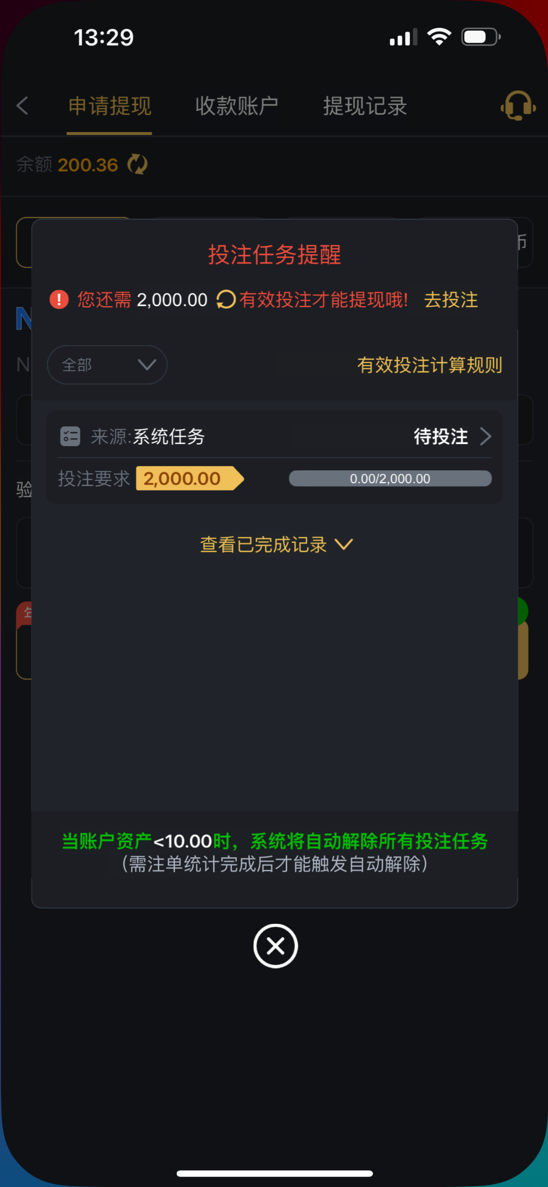 一两百块钱都要黑真的是活不起了 前面我提100的时候要求我还要打500流水 我打完500流水打到200又让我打2000流水