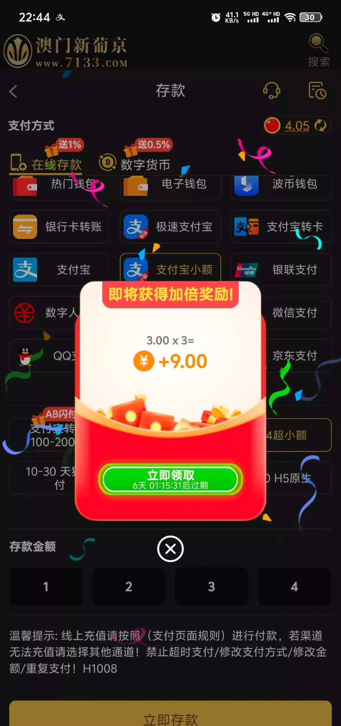 有号的可以看一下,我是领取了3块跳出来随意充值一笔再领3倍,10元可提