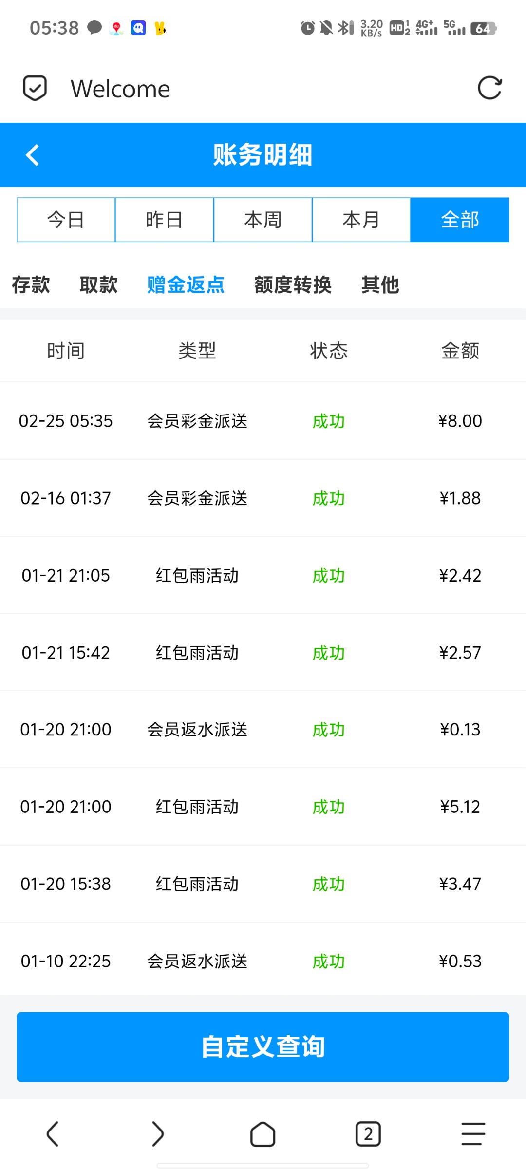 还是去年年初充值的,上次登录领了回馈!今天上去又给了8