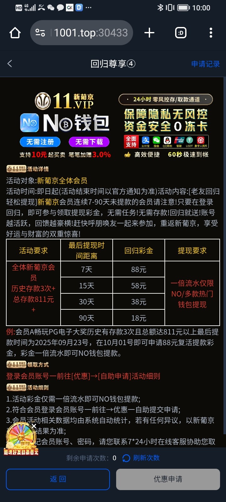 回归彩金符合的去申请小吃300