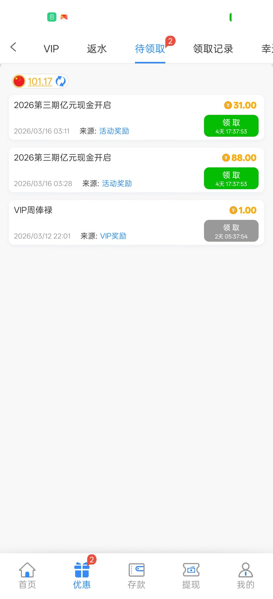 前面注册过的,下载APP登录账号上能领取31元,一顿猪脚饭钱,有号上去看一下!